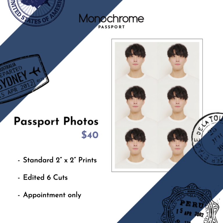 Passport photo is a 2×2 photo taken by our representative on-site.